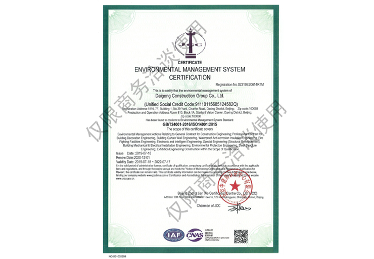 戴工建設(shè)集團(tuán)有限公司,創(chuàng)建于2009年,注冊(cè)資本9888萬(wàn)元人民幣。公司位于北京市大興區(qū)。具有建委頒發(fā)的建筑裝飾裝修專(zhuān)業(yè)壹級(jí),防水保溫工程專(zhuān)業(yè)壹級(jí),建筑幕墻專(zhuān)業(yè)貳級(jí),消防設(shè)施專(zhuān)業(yè)貳級(jí),電子與智能化專(zhuān)業(yè)貳級(jí),特種工程(結(jié)構(gòu)補(bǔ)強(qiáng))專(zhuān)業(yè)不分等級(jí),建筑機(jī)電安裝專(zhuān)業(yè)貳級(jí),環(huán)保工程專(zhuān)業(yè)貳級(jí),鋼結(jié)構(gòu)專(zhuān)業(yè)貳級(jí),建筑工程總承包貳級(jí),建筑裝飾工程設(shè)計(jì)專(zhuān)項(xiàng)甲級(jí),展覽陳列工程設(shè)計(jì)與施工壹級(jí),展覽展示工程壹級(jí)...更多>>